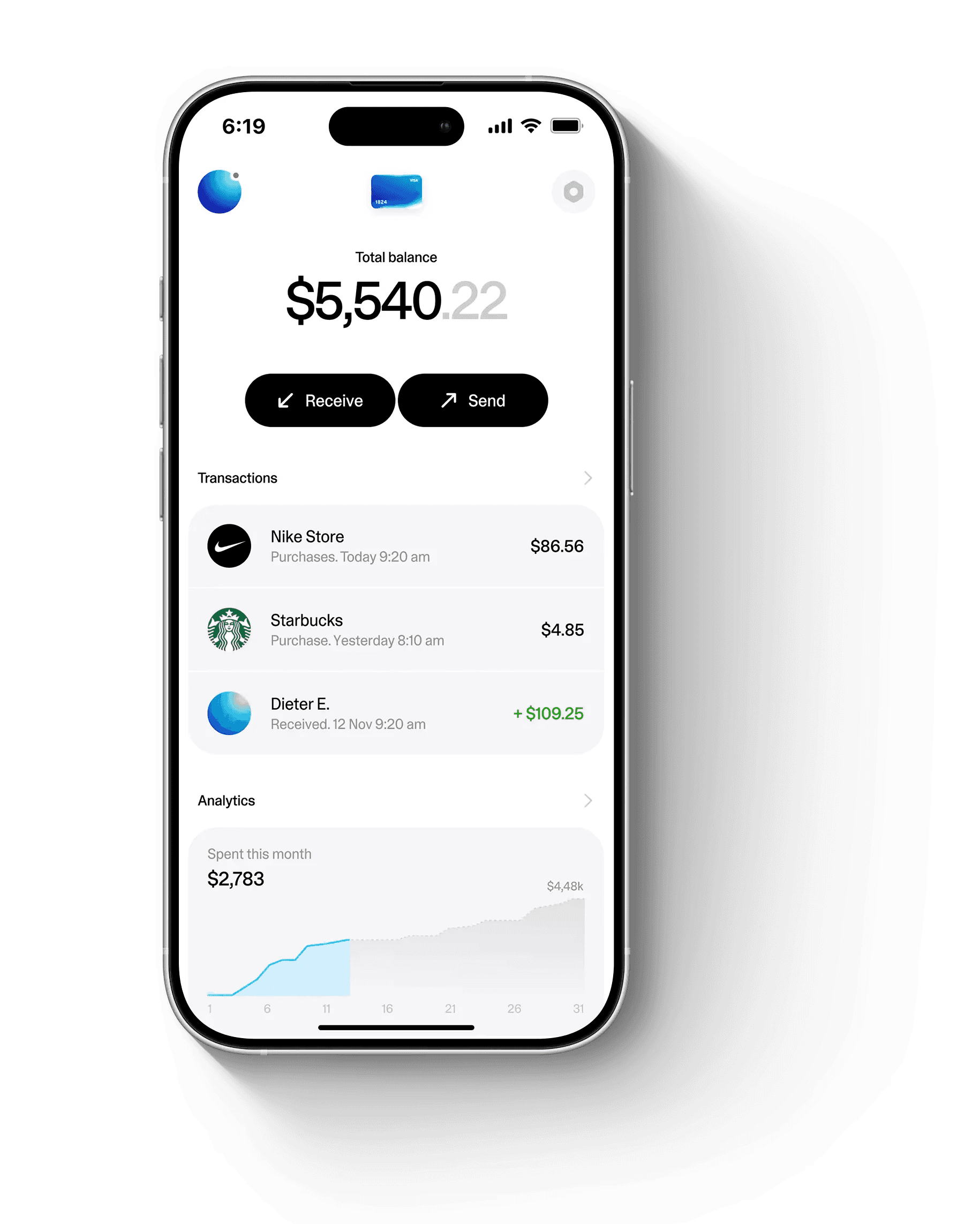 Use wallet or card to receive money immediately — with instant incoming transfers visible in your transaction history.